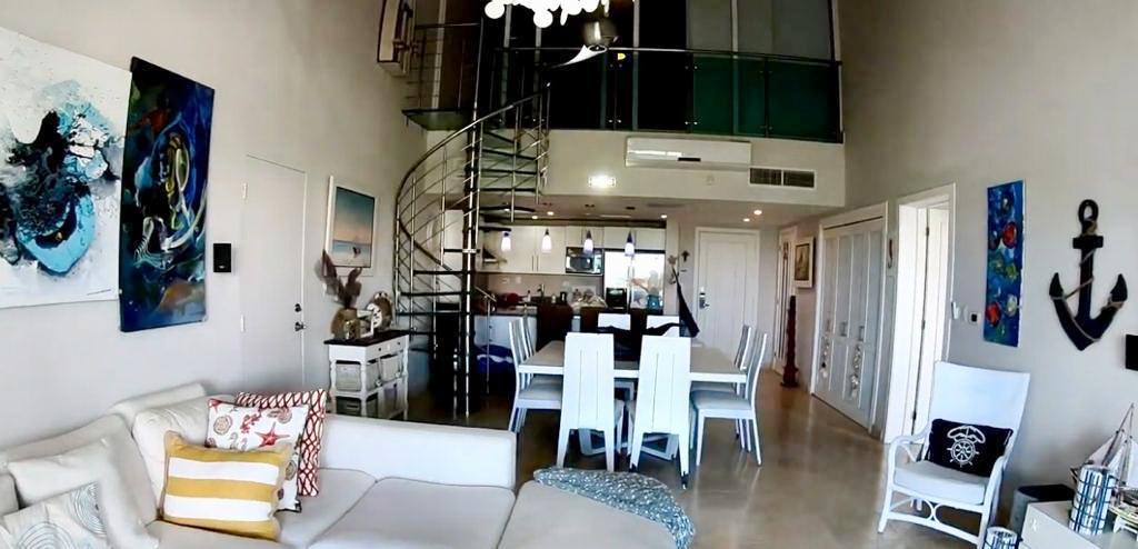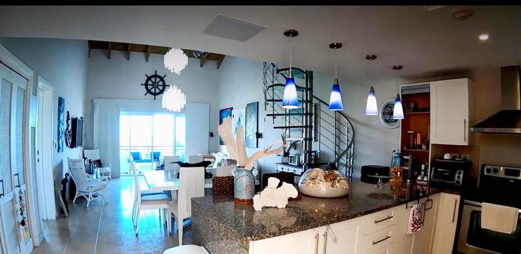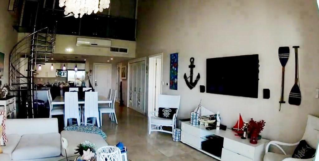 This ocean view two level penthouse on the 3th floor with 2 bedroom and 2 full bathroom has been entirely renovated in a high modern luxury style. Huge terrace overlooking the ocean with a modern open kitchen looking over the sea and the living room with high ceilings. It’s a two level condo.